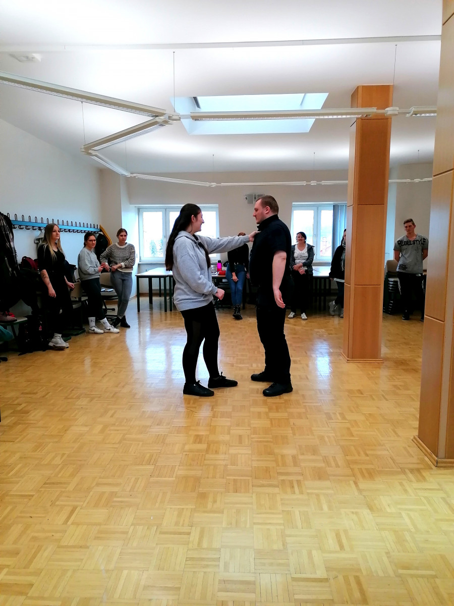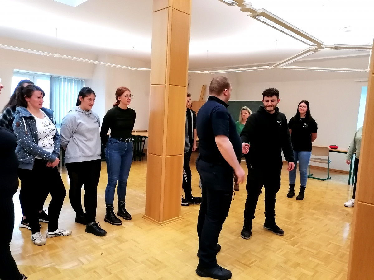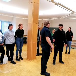 Im Rahmen der Seminartage zum Jugendpraktikum erlebte das zweite Ausbildungsjahr der Fachschule Sozialwesen ein Deeskalationstraining in theoretischer und praktischer Hinsicht. Dabei ging es darum, Gewalt vorzubeugen bzw. Krisensituationen professionell zu entschärfen und sich auch rechtlich in seiner beruflichen Rolle abzusichern.