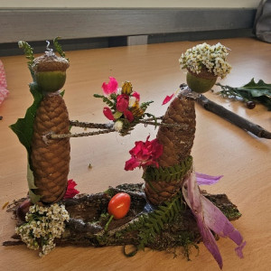 Während der Wanderung haben sich die Schüler der 11. Klassen gut kennengelernt und hatten eine tolle Zeit zusammen. Unterwegs wurden in Gruppen verschiedene Gegenstände aus der Natur gesammelt, wie zum Beispiel Tannenzapfen, Blätter, Blumen oder Äste, um nach der Ankunft im KiEZ in den Gruppen jeweils ein Maskottchen daraus zu basteln. Dabei sind drei sehr kreative Maskottchen entstanden, die nun in unserer Schule zu finden sind.
