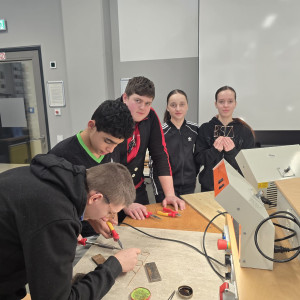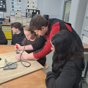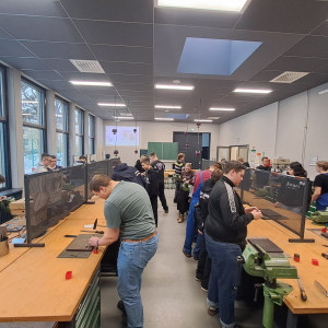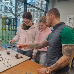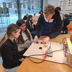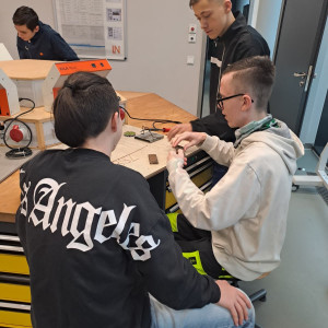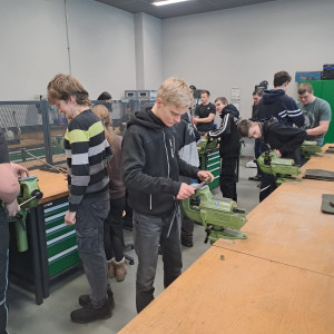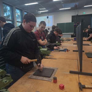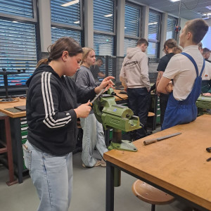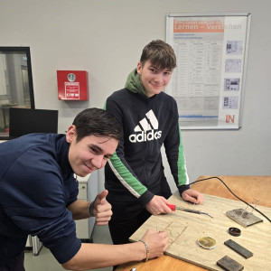 Am Standort in den Schilleranlagen standen zwei verschiedene Angebote zur Auswahl. Im Bereich der Metalltechnik konnten die Schüler mit den BVJlern ihre Fähigkeiten beim Feilen und Messen testen, indem sie kleine Spielwürfel aus Metall anfertigten. Der zweite Workshop widmete sich der Elektrotechnik. Hier erklärten die BVJ-Schüler stolz, was sie bereits beim Löten gelernt hatten und gestalteten zusammen mit den Gästen kleine BSZ-Schilder.