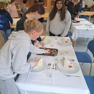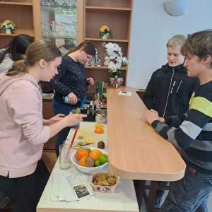 Auch an diesem Standort gab es verschiedene Workshops in den Bereichen Gesundheit und Soziales sowie hauswirtschaftliche Dienstleistungen. Die Schüler der Förderzentren konnten sich in der Küche ausprobieren und lernten grundlegende Inhalte aus den Bereichen Pflege und Kundenbetreuung kennen. Außerdem übten sie das richtige Tischdecken und das Mischen alkoholfreier Cocktails mit Unterstützung der BVJler.